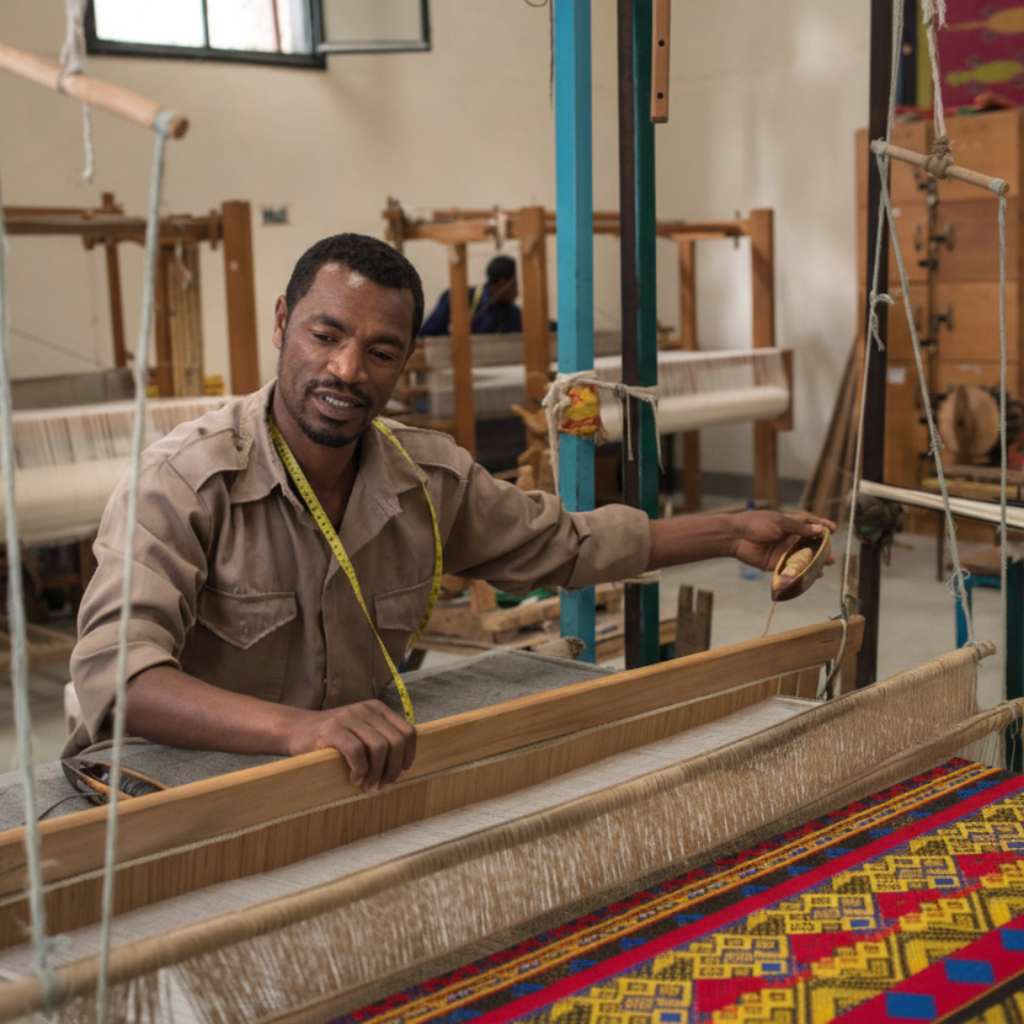 The threads are woven on traditional two-pedal handlooms. This process is a rhythmic spectacle performed by artisans (historically men, known as Shemane). It requires considerable time, taking up to three weeks to finish one Habesha Kemis.
